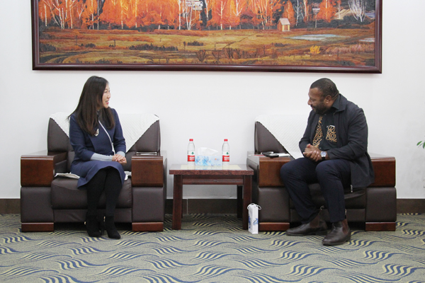3月20日,巴布亚新几内亚农业部第二秘书威廉姆先生访问beat365,副校长徐颖会见了来宾。