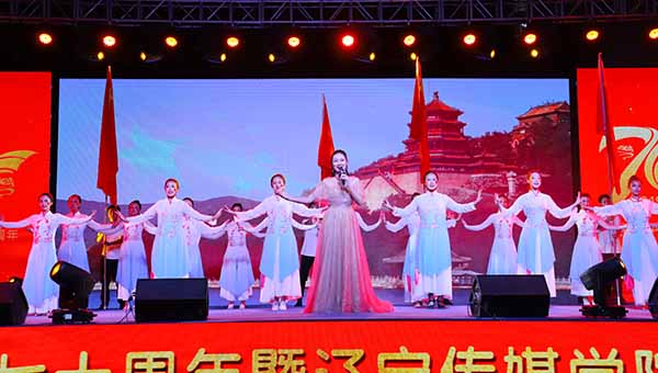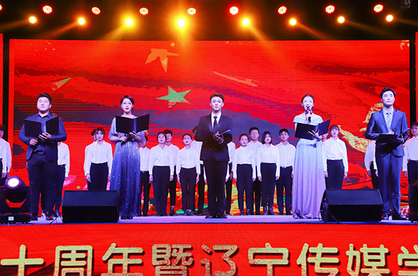 六点半,夜色降临。绚烂的灯光与动感的音乐交织出一幕幕耀眼的画卷 ,一场精彩纷呈的晚会就此拉开了帷幕。开场舞《追梦新时代》韵动旋律挥洒青春色彩,诗朗诵《幸福70年》,掷地铿锵,深切表达了辽传人对祖国的祝福,。