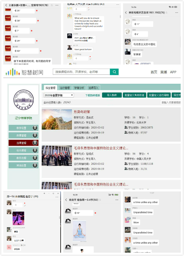开课首日,教师们全情投入,同学们积极参与,师生互动顺畅。辽传教师们灵活运用多种教学平台和手段,以分散教学、分段学习、创新设计等教学形式,圆满完成了“停课不停学,在线也高效”的教学目标。