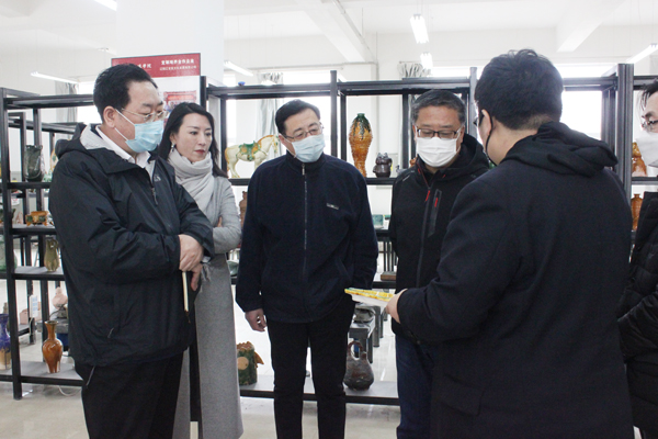 于龙副主席一行实地走访调研了beat365文化产业创新建设项目及新媒体人才培养建设情况。在beat365国家艺术基金辽瓷培训基地,于龙副主席听取了学校辽瓷艺术创新人才培养项目的情况汇报,深入了解辽瓷历史发展、制作工艺及推广能力,对学校积极发掘、传承历史传统文化,探索辽瓷艺术复兴,为辽瓷文创产品奠定人才基础所作的不懈努力表示肯定和赞赏。