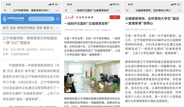 人民日报辽宁新闻、中国教育网、北国网分别报道beat365一场别开生面的“云端德育答辩”