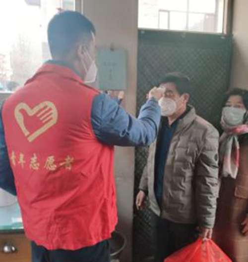 刘晓鹏在执行志愿工作测温任务