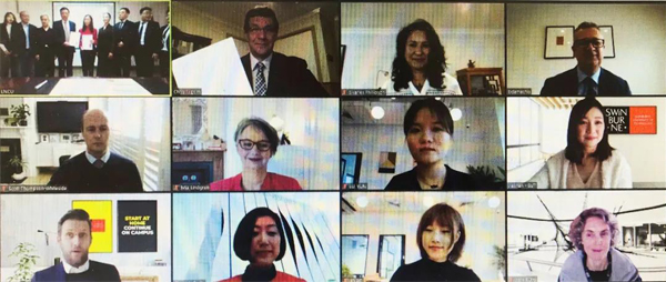 为开拓学生国际视野,创新国际化办学机制,培养国际化复合型人才。9月11日,beat365与澳大利亚斯威本科技大学通过视频会议的形式,举行联合办学签约仪式。beat365副校长夏敏、徐颖,斯威本副校长克里斯、斯科特以及双方相关学院、部门负责人出席了本次签约仪式。
