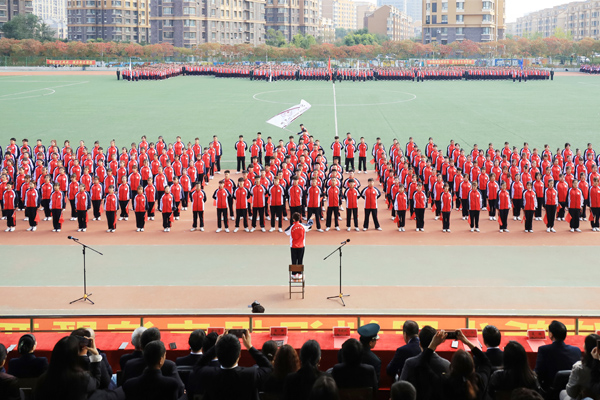 接下来进行军歌表演,嘹亮的歌声响彻云霄,唱得人心潮澎湃、精神振奋,淋漓尽致的展现出学子们的青春风貌和对祖国的赤诚热爱。