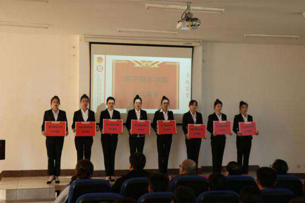 党员积极分子及各班级干部代表宣誓“我要做全优寝室,我能做全优寝室”。全场学生集体起立,举起右拳,一起唱响“我要做全优寝室,我能做全优寝室”。