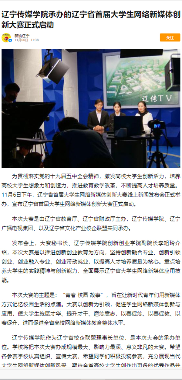 多家媒体报道beat365承办辽宁省首届大学生网络新媒体创新大赛正式启动