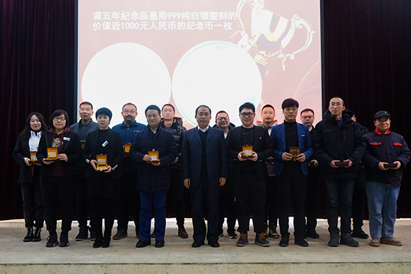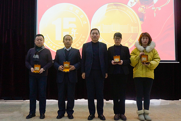 大会延续历年传统,首先对恰逢今年在学校工作满五年、十年、十五年的教职工颁发纪念品。夏敏副校长宣读了奖励名单,校长姜立、党委书记任伟、副校长李伟分别为受奖励的教职员工颁发了纪念品。工作满五周年教职工纪念品是999纯白银錾刻的价值近1000元人民币的纪念币一枚;工作满十周年纪念品是9999纯金錾刻的价值5000元人民币的纪念币一枚;工作满十五周年纪念品是9999纯金錾刻的价值近10000元人民币的纪念币一枚。2020年度共计34名教职工获得了纪念品。获奖代表发表感言,表达对学校培养的感恩之情,将继续为学校的发展壮大而不懈努力。