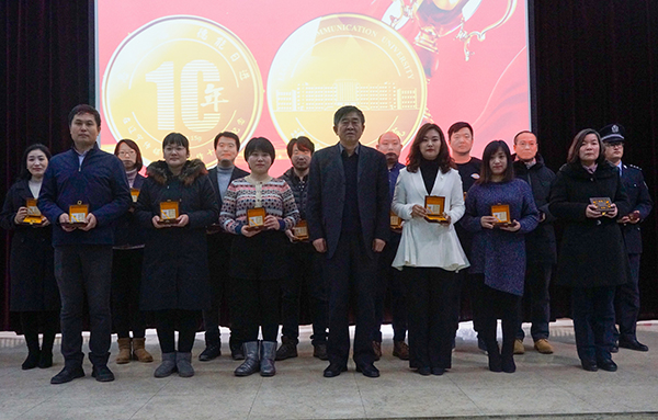 党委书记任伟与今年在学校工作满十年员工合影