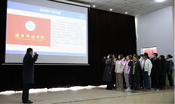 之后,会议举行了新教师入职宣誓仪式。本学期新入职教师集体宣誓表示:要忠诚党的教育事业,遵守教育法律法规,秉承“志存高远、德能日进”的校训,履行教师职责,潜心教书育人,努力追求卓越,诚实守信,遵守职业规范,遵守学校各项规章制度,传递正能量,做到有理想信念、有道德情操、有扎实学识、有仁爱之心,为学校发展、教育振兴、国家繁荣和民族复兴努力奋斗!