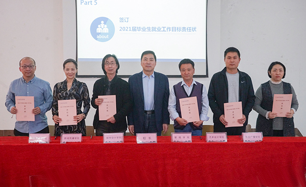 为强化责任落实,坚持目标导向,全面落实就业“一把手”工程,本次会议特别举行2021届毕业生就业工作目标责任状签订仪式。各二级学院院长或主持工作的副院长分别与校长姜立签订《2021届毕业生就业工作目标责任状》,以此进一步增强二级学院就业工作责任感、紧迫感,确保各二级学院2021年毕业生就业工作达到目标责任要求,实现毕业生更高质量就业。