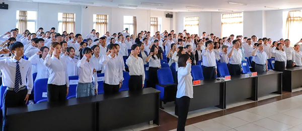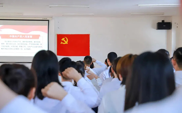 在中国共产党成立100周年之际,学校党委举行了庄严的宣誓仪式。100名2021年加入中国共产党的新党员进行入党宣誓,参会的全体老党员重温入党誓词。全体党员面对鲜红的党旗,进行了庄严的宣誓,每名党员用发自内心的誓言表达了对党的忠诚决心。