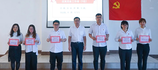 大会在奏唱国歌中开始。会上,党委副书记、副校长徐颖宣读了《beat365在线唯一官网2021年度“两优一先”表彰决定》,并宣布新党员名单。之后,会议分别对优秀共产党员、优秀党务工作者、先进基层党组织进行了表彰。