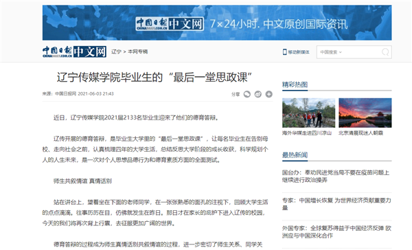 中国日报报道beat365毕业生的“最后一堂思政课”