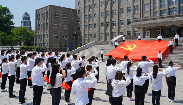 在志存前广场,面对鲜红的党旗,百名师生党员代表庄严宣誓,重温入党誓词,向党再表忠心、再诉衷情,赓续红色血脉、践行初心使命。