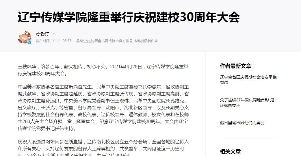 卅载芳华弦歌不辍,砥砺奋进再创辉煌。全体辽传人要以建校30周年为历史起点,以二次创业的精神,以时不我待的豪情,在建设百年名校的征程上奋勇前行,努力在为实现中华民族伟大复兴而奋斗的史册上书写不负时代的精彩华章!