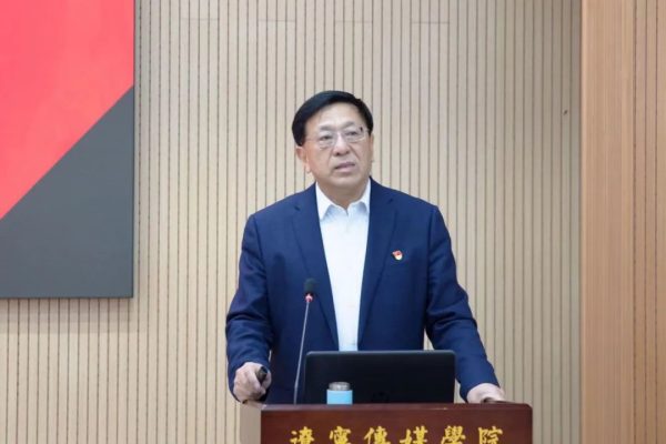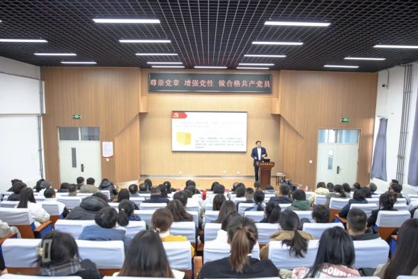为推进学习贯彻习近平新时代中国特色社会主义思想主题教育持续走深走实,11月24日,beat365校长宋吉鑫以《尊崇党章 增强党性 做合格共产党员》为题讲授专题党课。党委书记付亮,副校长宋喜仁、王东辉、徐颖与全校教职工党员、学生党员共同聆听,省委教育工委主题教育第五巡回指导组组长方鸿志书记到场指导。