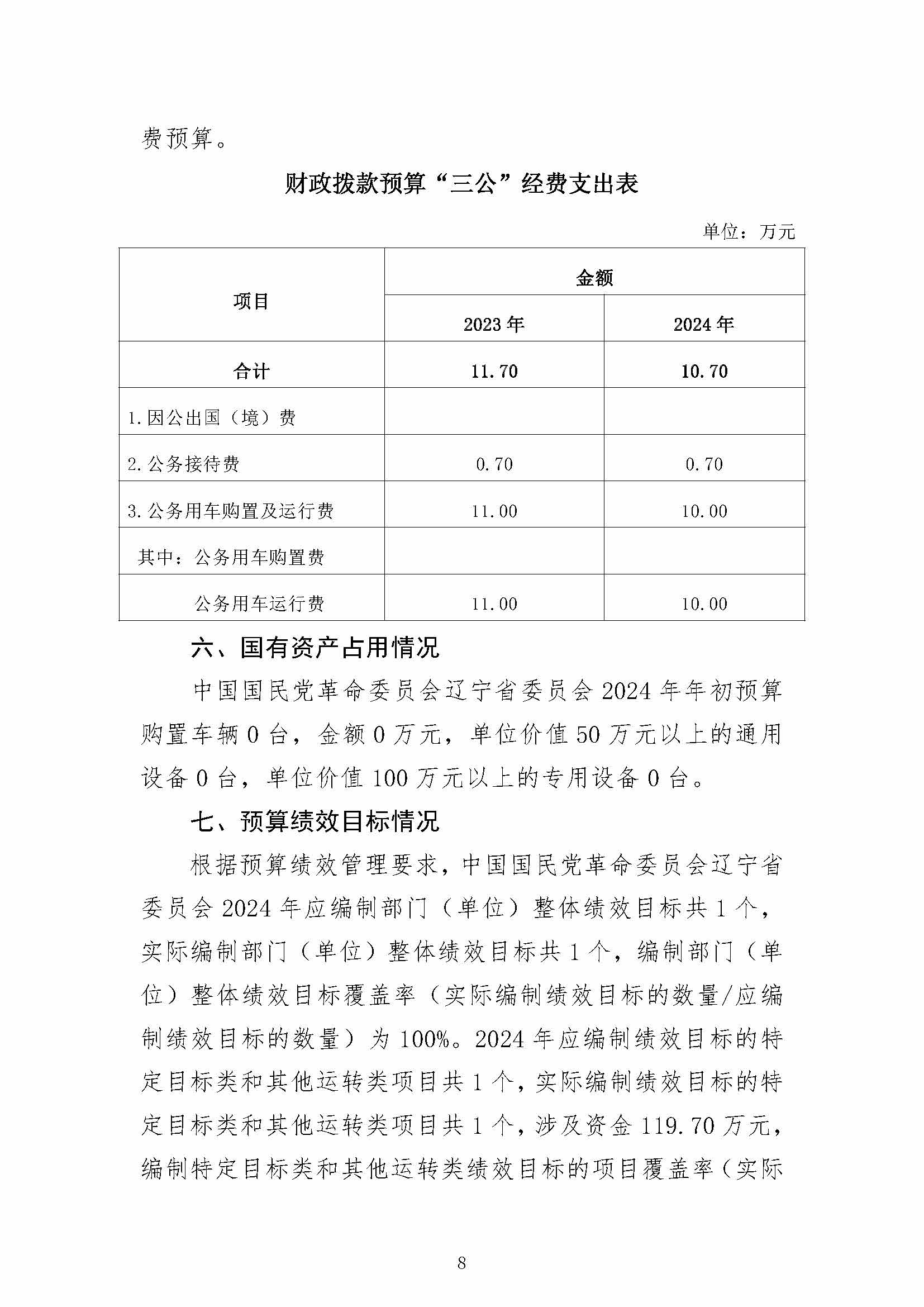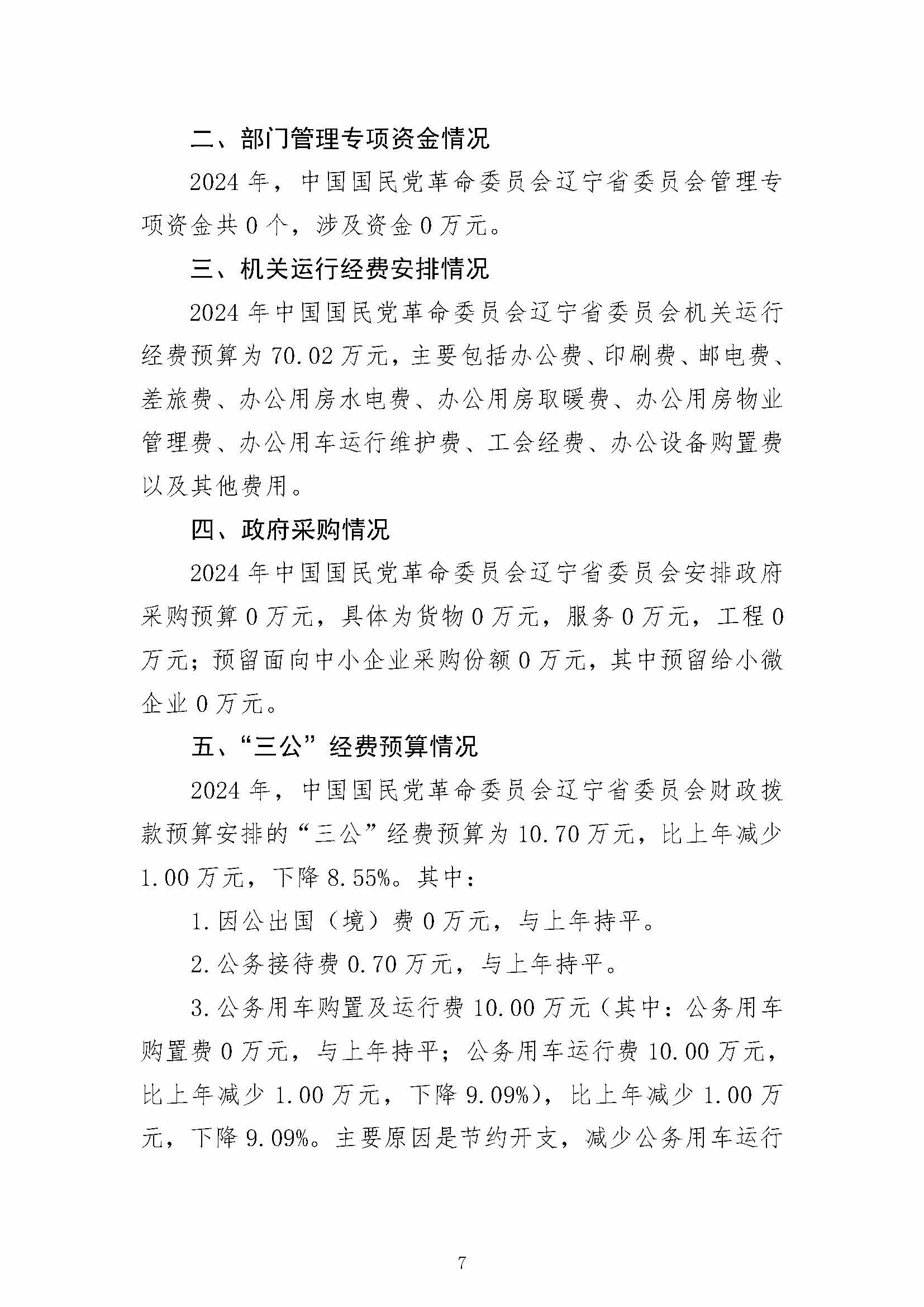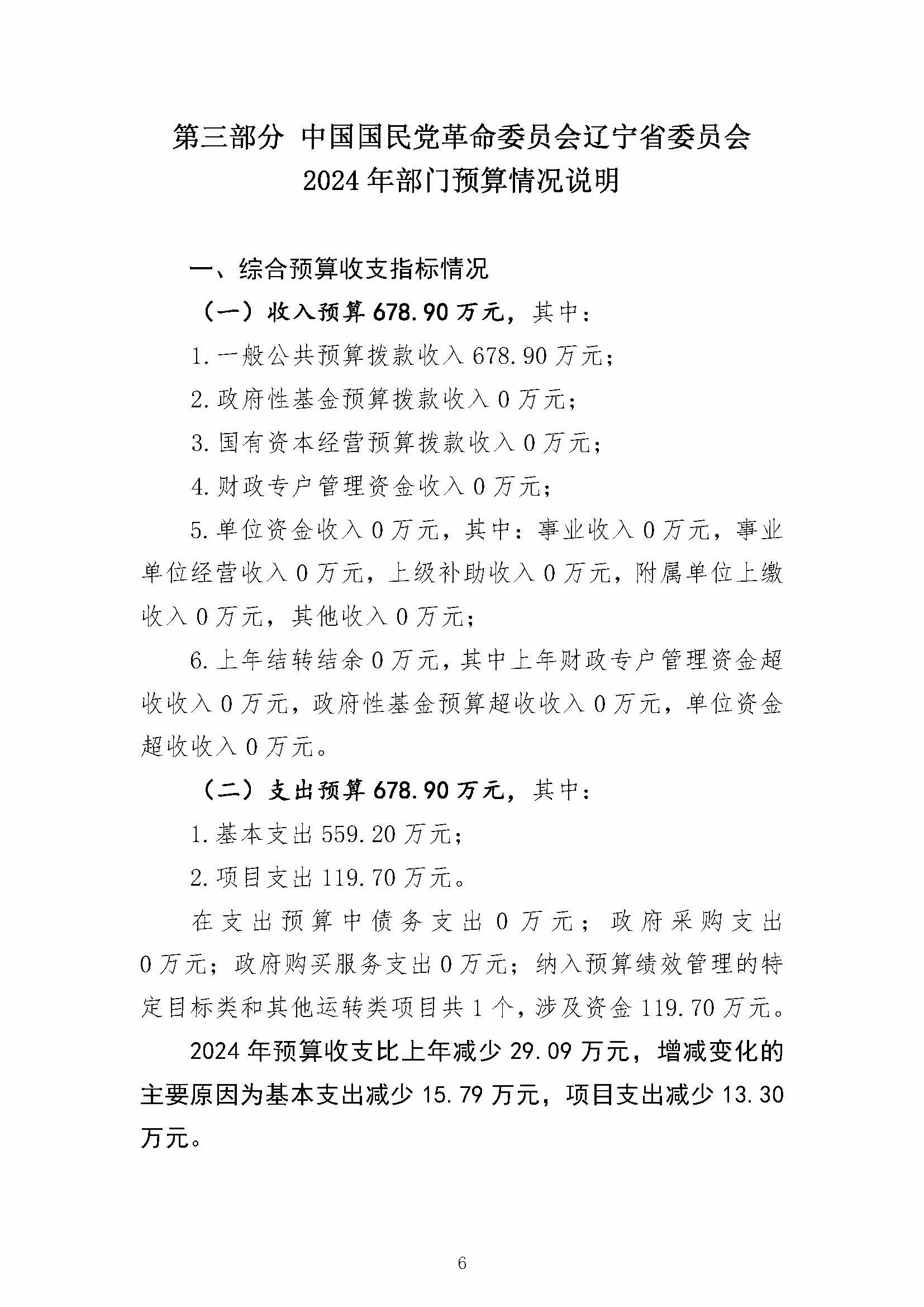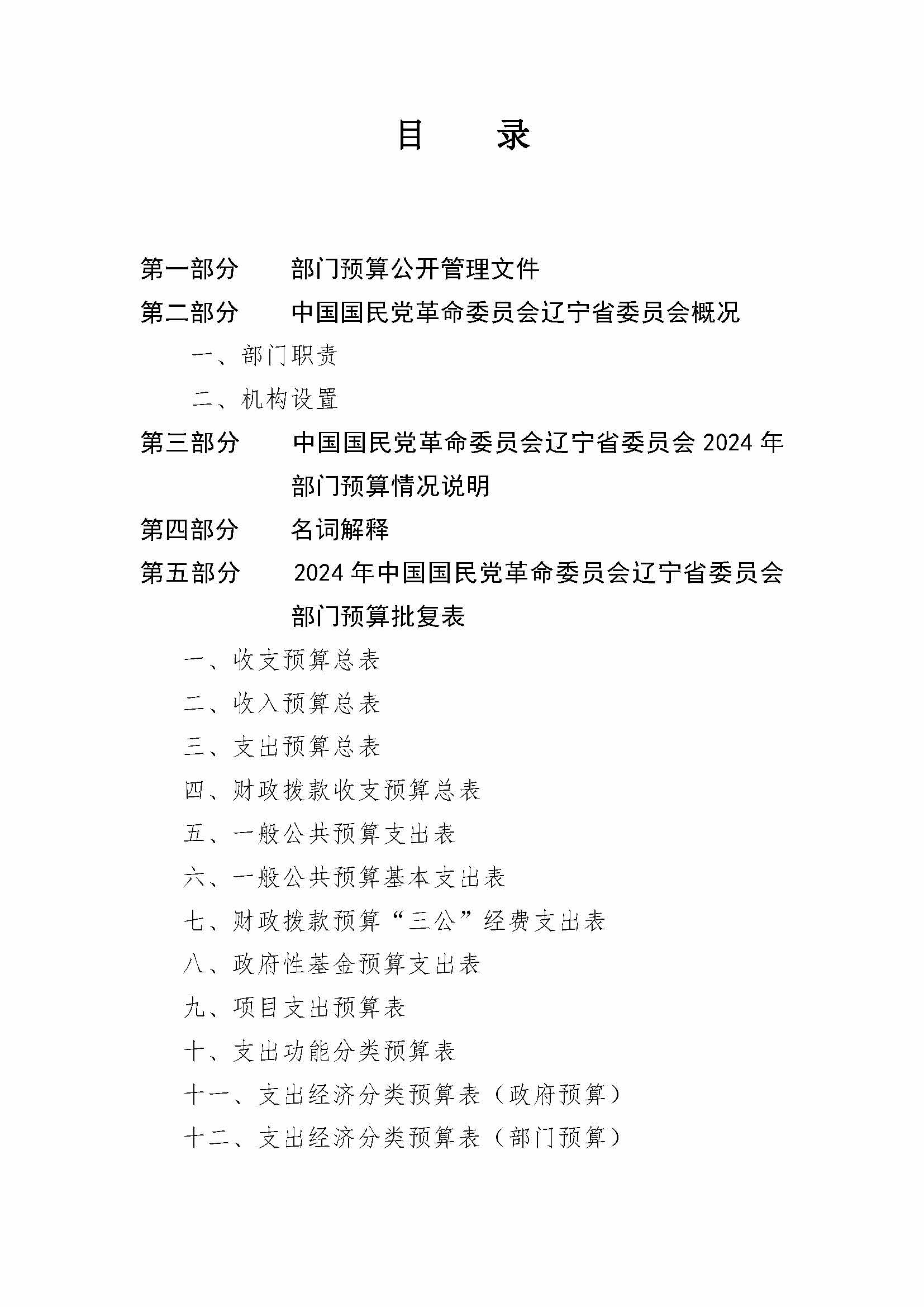 中国国民党革命委员会辽宁省委员会 2024 年度部门预算