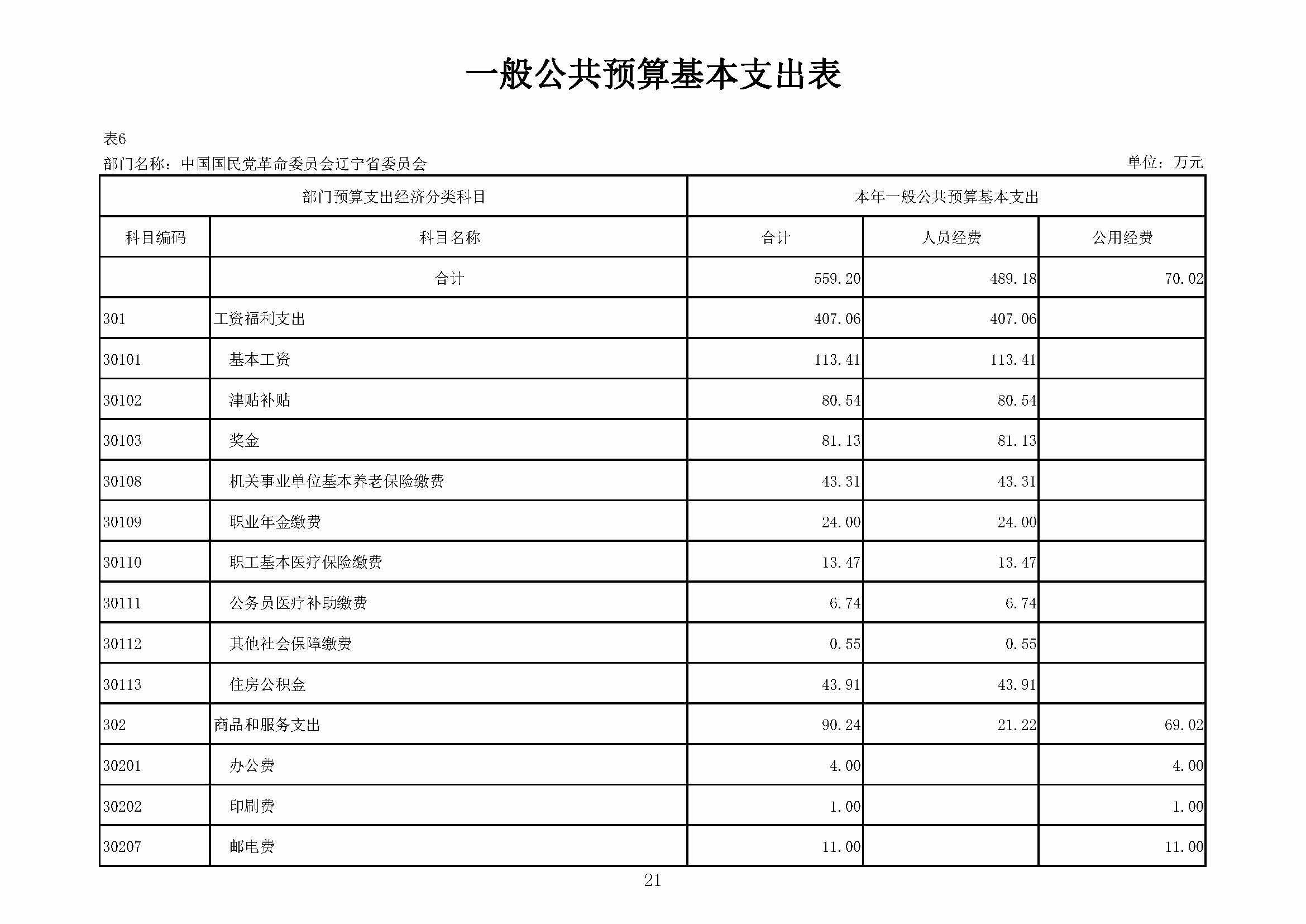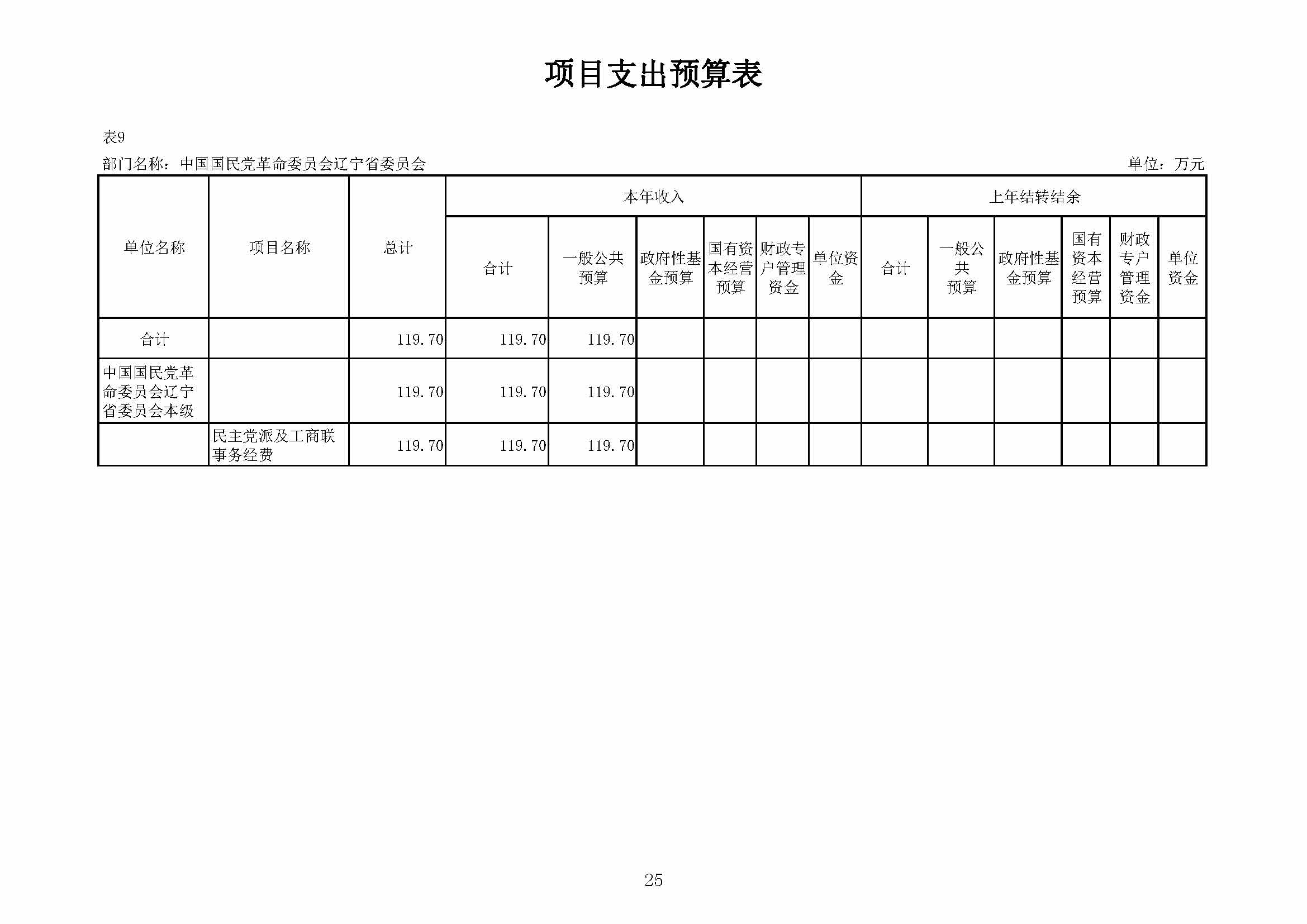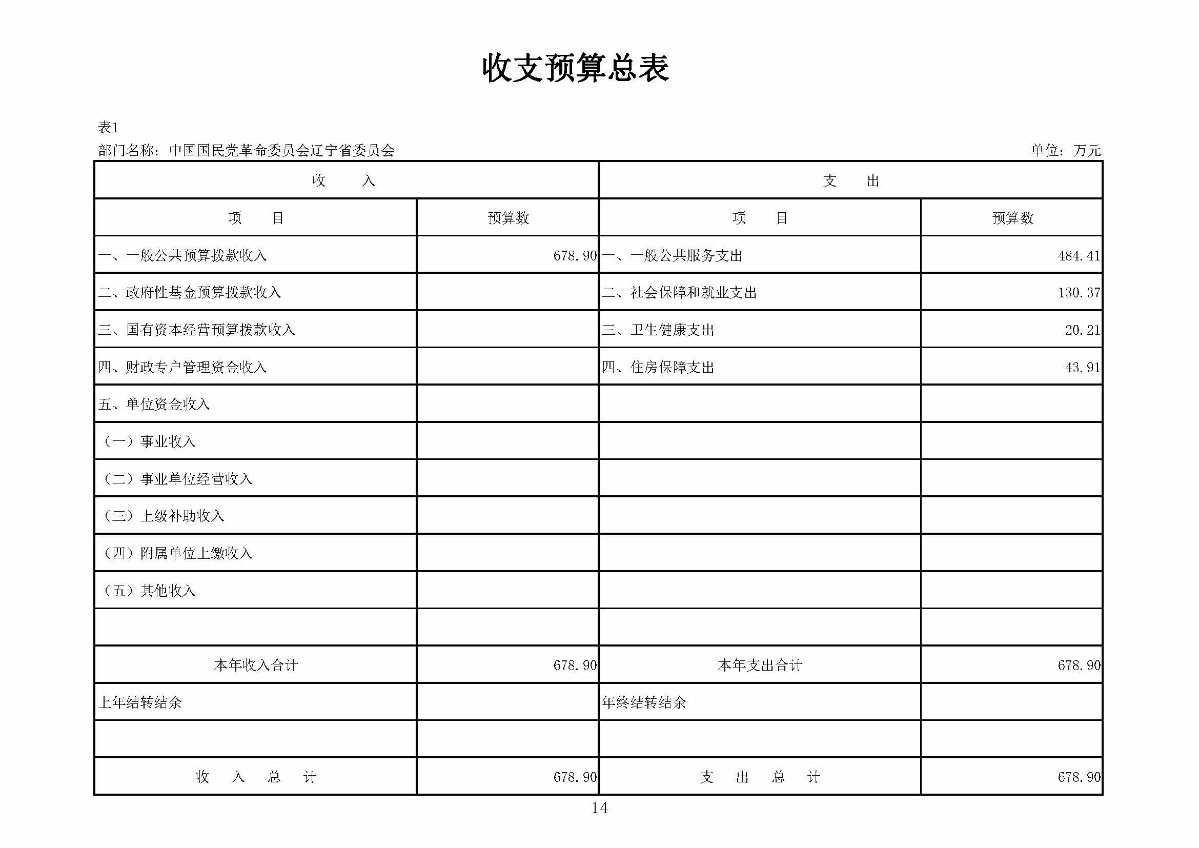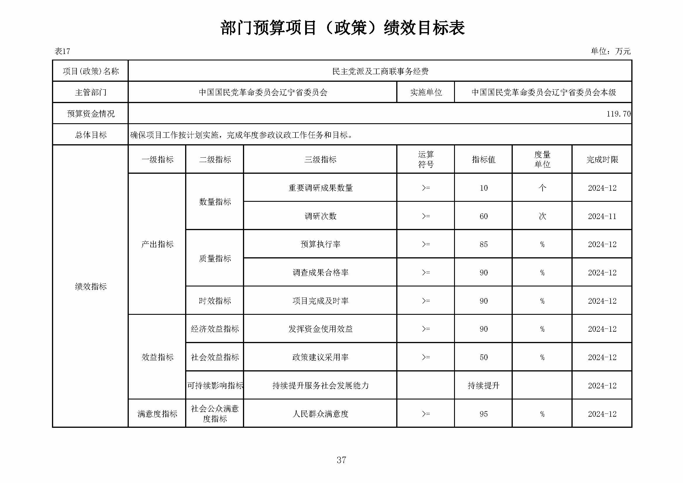 中国国民党革命委员会辽宁省委员会 2024 年度部门预算