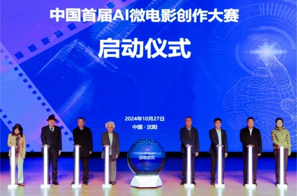 与会领导、嘉宾共同启动了“中国首届 AI 微电影创作大赛”。本次大赛面向全国征集AI微电影作品,同时为影视行业从业者、AI技术爱好者及广大影迷提供一个研究、创新与展示的平台。