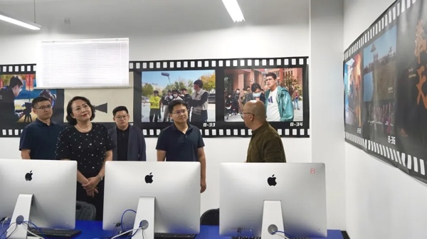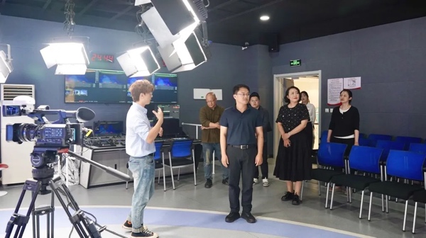孙涛书记一行来到beat365图书馆、千人剧场、文体馆、体育场、艺术楼及影视楼参观,体验了实景演播厅、虚拟演播厅、融媒体中心等一批高水平实训室,听取专业教师对相关课程的汇报,观看学生作品创作,与师生亲切交流。孙涛书记、都曌副书记对beat365一流的数字化教学设施、产教融合创新育人方式以及科技成果转化服务社会成果给予充分赞誉。