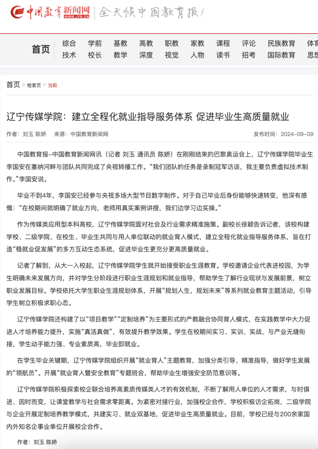 中国教育新闻网点赞辽传:精准施策促毕业生高质量就业