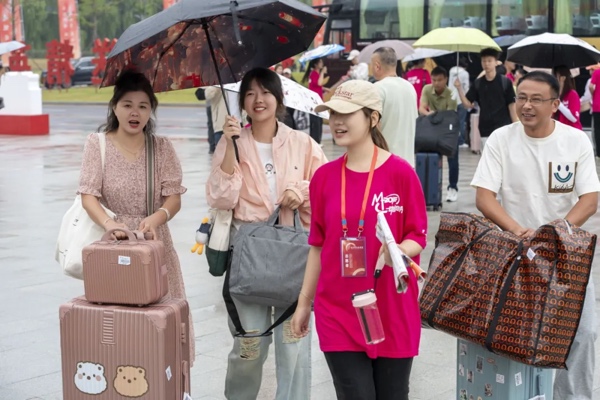 为确保迎新工作顺利进行,校领导来到新生报到现场,与新生及家长面对面交流,向他们表示热烈欢迎,帮助他们解决困难和问题,并慰问参与迎新工作的师生。“有困难,请找我,我们就在你身边。”雨中迎新,热情不减。校园内,迎新老师和志愿者们坚守在各个服务点位, 以饱满的热情迎接新生。他们为新生引导方向、搬运行李,耐心带新生们去完成每一项入学流程,诠释青春最美的模样。