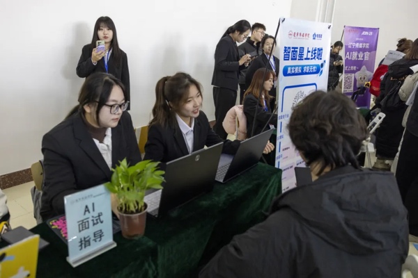 毕业生与企业交流面试