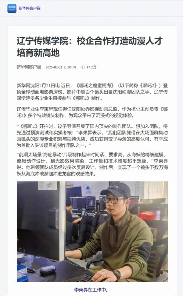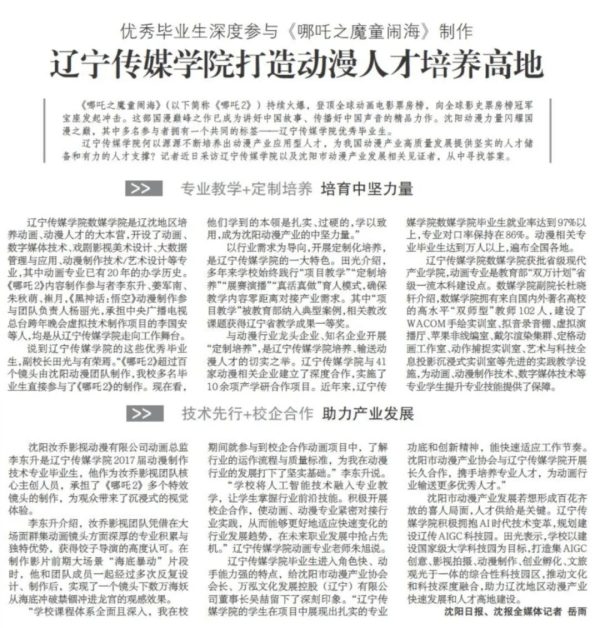 新华网、沈阳日报报道:辽传优秀毕业生深度参与《哪吒2》制作