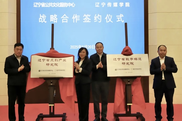 签约仪式后,王纪元副主任与徐颖副校长,冉洪田副主任与李伟副校长分别为“文创产业研究院”和“数字非遗研究院”揭牌,宣告两个研究院正式成立。至此,双方将以打造全国文创行业领跑者、构建数字非遗保护创新体系为目标,推动辽宁文化事业迈向新高度!