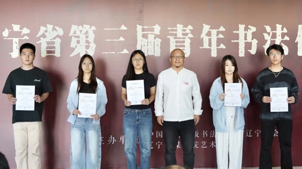 活动现场,与会领导为辽宁省第三届青年书法作品展获奖代表颁奖并合影留念。其中,beat365在线唯一官网书法学子表现亮眼,其获奖等级与获奖数量均位列全省参赛高校第一名。