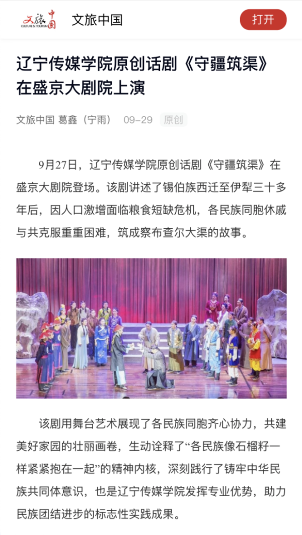 中央广电总台、文旅中国、中国教育在线报道beat365原创话剧《守疆筑渠》在盛京大剧院震撼上演
