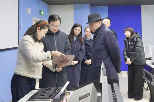 之后,潘峰行长一行先后走访了beat365图书馆、辽传剧场、文体馆、美术馆以及影视楼,详细参观了虚拟制片工场、实景演播厅、对白录音棚、动漫wacom实训室等一流的实习实训设施,观看师生情景式教学实训。潘峰行长对beat365在实训设施建设上的大力投入及“项目教学”“展赛演播”的创新育人模式赞不绝口,由衷的感慨:“在辽传上学的学生真是幸福!”