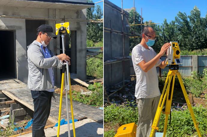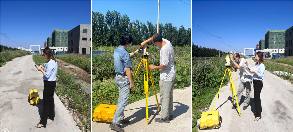 本次现场校对,由城市设计学院北校区景观规划项目主创设计师环境设计系主任刘敬枚主持复核任务,风景园林系主任闫要宁、专业教师杨祺提供复核技术支持。8月28日,测绘组一行携带风景园林系最新采购的精密场地测绘仪器——全站仪,赴北校区施工工地现场进行实地测量,核对设计方案修改部分的场地实际地形、标高,校准施工图数据。