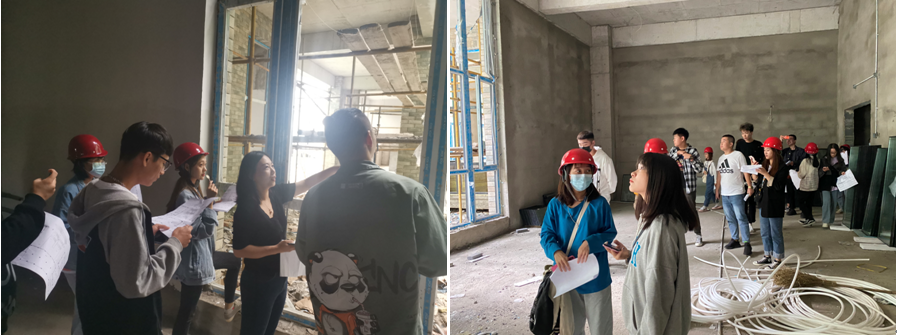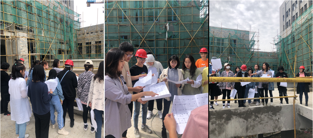 本次北校区实践调研过程中,学生个个充满激情,紧随教师围绕图书馆的内庭进行勘察和拍照,认真做好记录。通过老师的实地讲解,学生明白了绘制的图纸与现实建筑之间的对应关系,学到很多施工现场实践的知识,增添了学生学习环境景观设计的兴趣和信心,提升了整体课堂教学的质量。