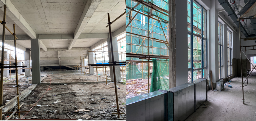实训过程中,结合北校区图书馆的图纸,学生们能够积极地认真地将图纸与实际工程现场相对照,包括建筑位置、建筑外立面、土壤状态、自然条件,周边环境等,更实际的感受现场的空间感、尺度感。同时学生们还需校对图纸现有尺寸和标高,补充图纸所缺失的内容,为下一步的项目实际设计做好基础准备。