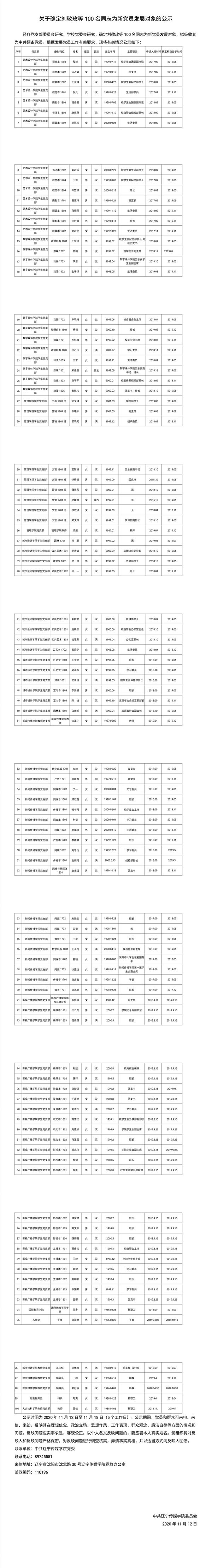 关于确定刘敬玫等100名同志为新党员发展对象的公示