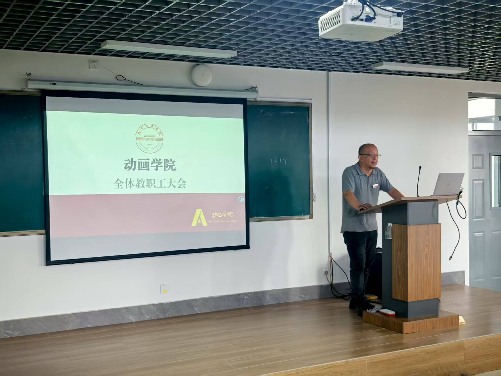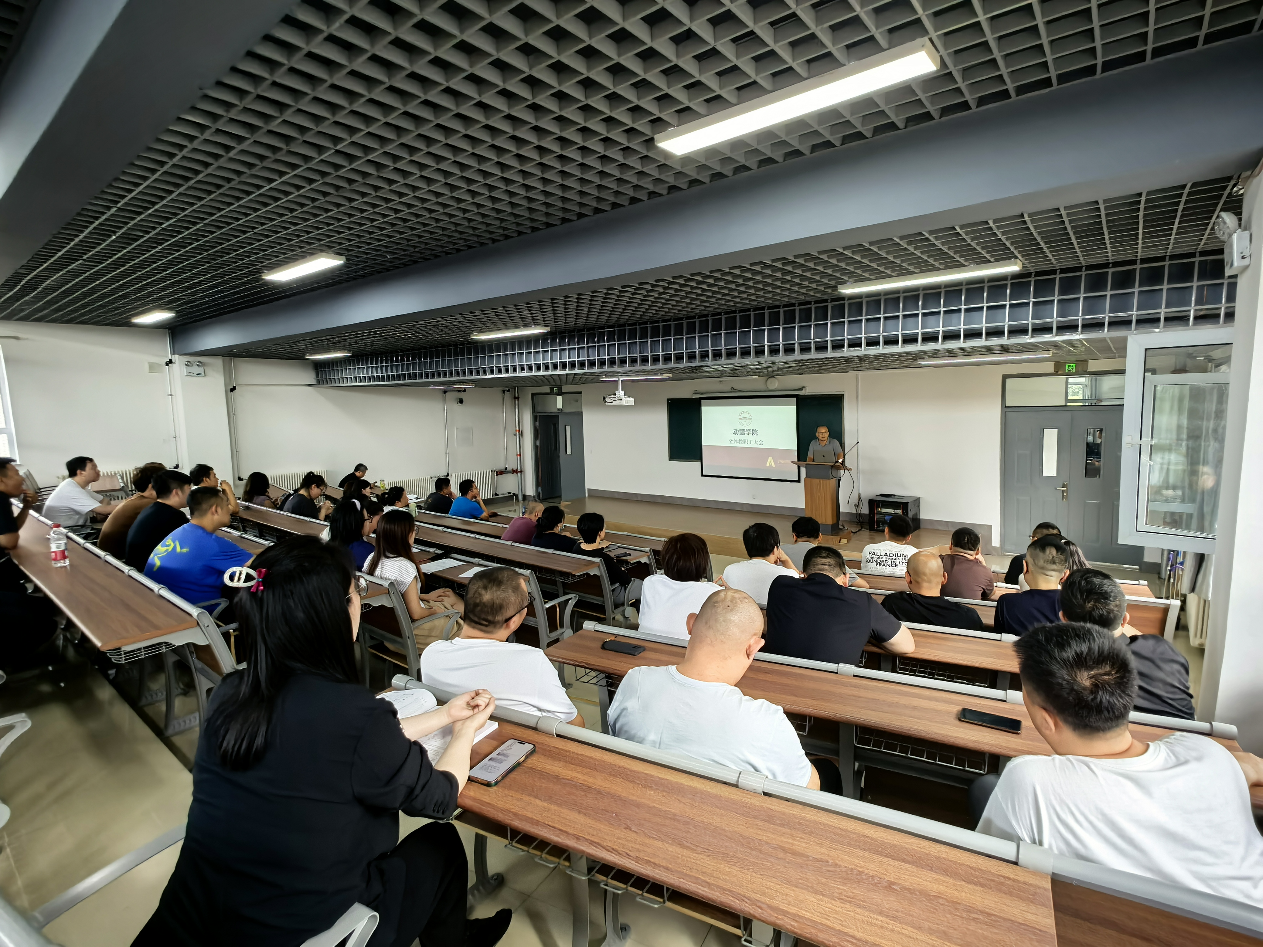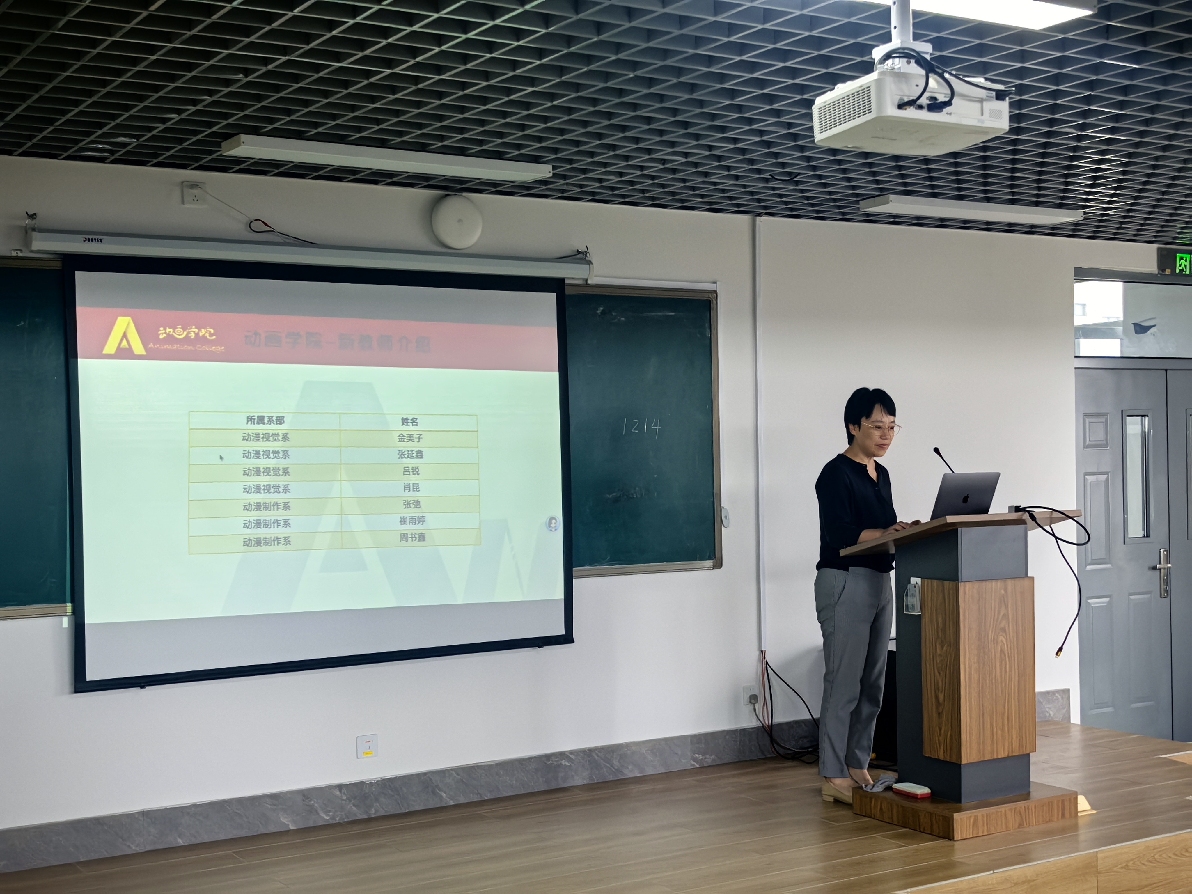 会上,院长宣布组织架构调整:原数媒学院动画系升级为动画学院,以优化专业设置、提升教学针对性;新入职教师依次自我介绍,为学院注入新活力。