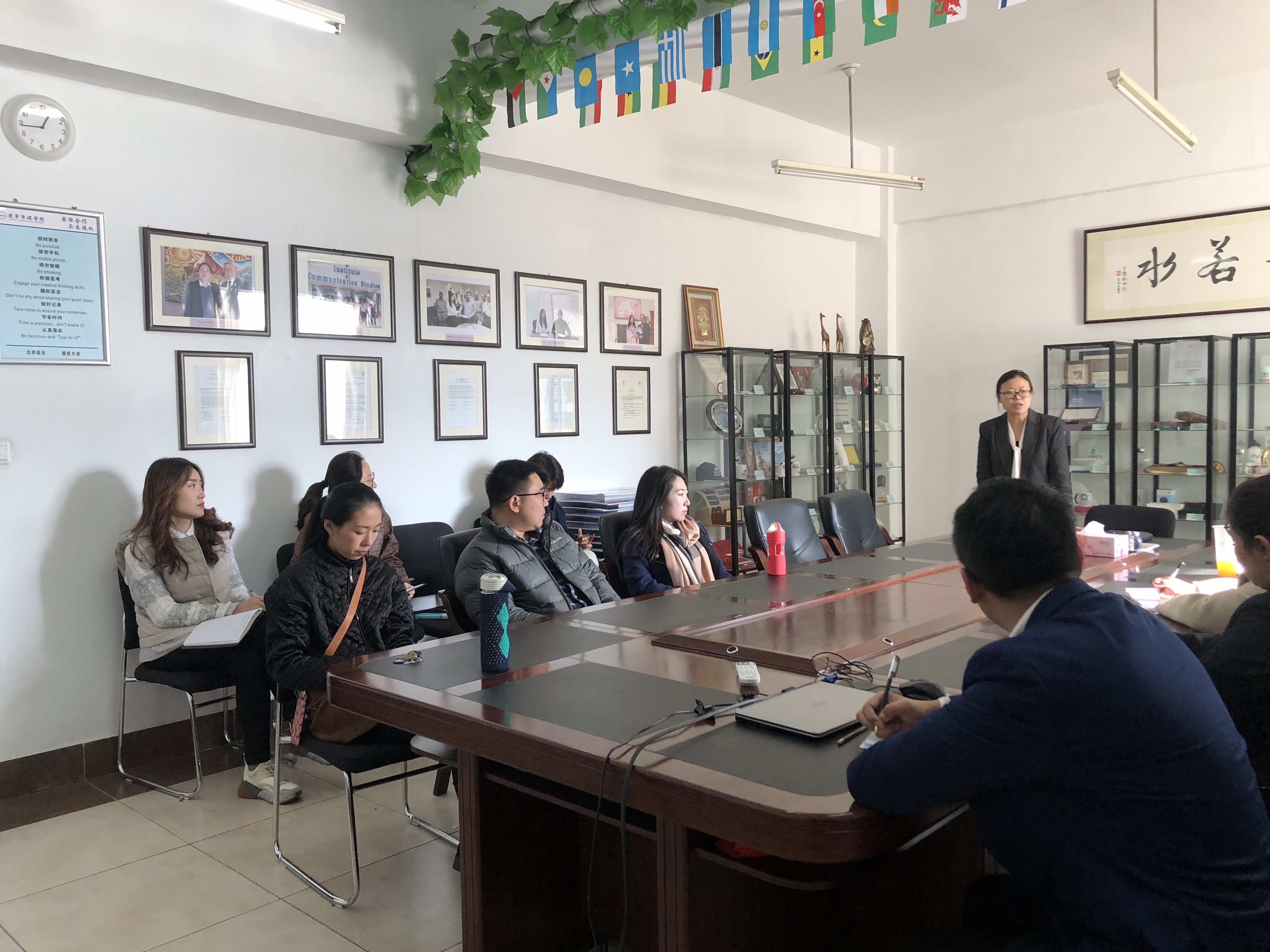 11月8日国际教育学院召开2019年秋季学期教学总结会。会上,老师们分别就期中考试情况进行了总结,就现有教学问题进行了统一汇总交流,会上,还就期末考试前的具体工作做了详细解释和安排。