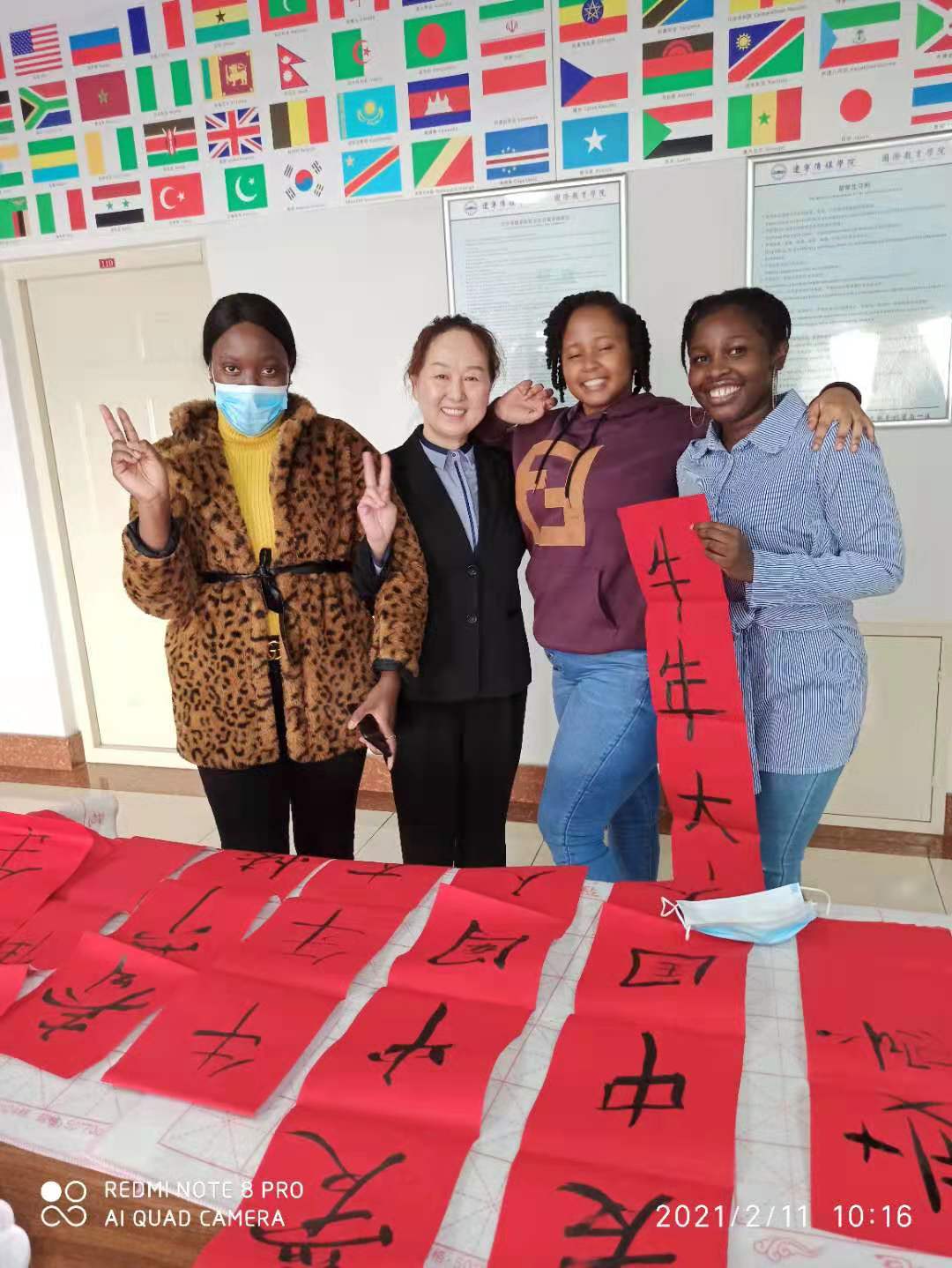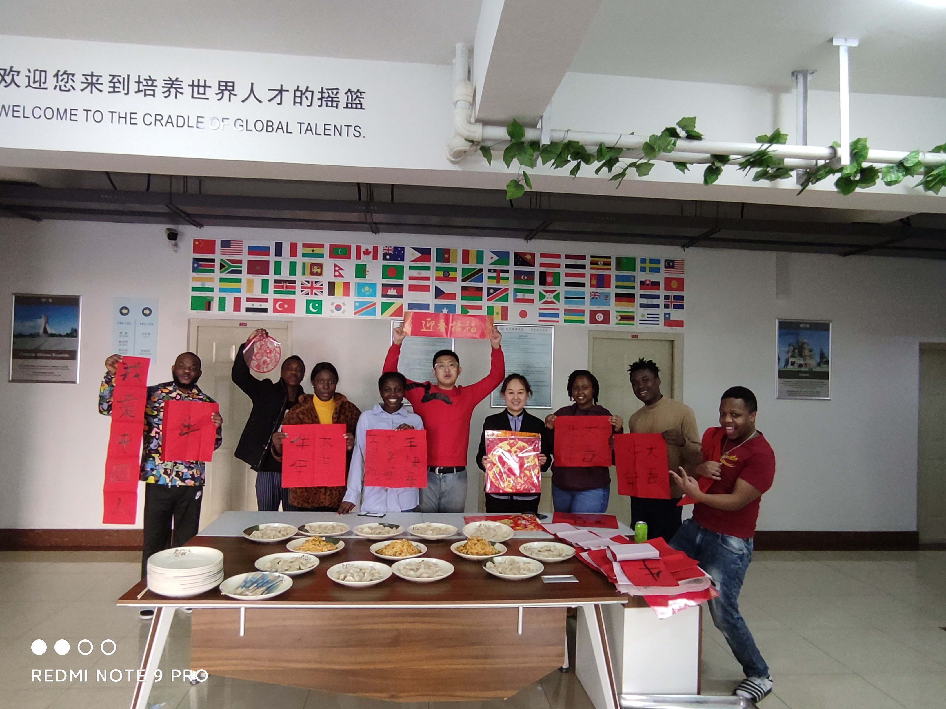 在校教师代表和留学生代表互致新年祝福,共写中国春联,共同烹制了中国新年传统美食-饺子。师生从中国春节的传统说起,在历史、教育、经济、文化等方面,对各个国家新年的传统风俗展开了交流,尽管地域不同相隔千万里,但是我们对于美德和家庭的情感都是一脉相承,心灵互通的。同时学生们对学校即将到来的30年校庆充满了期盼和祝福,大家共同祝愿辽传的明天更加美好!通过交流让我们深刻感受到辽传学子对于家的思念,对于辽传深厚的情感,对于克服面前苦难的勇气和信心!
