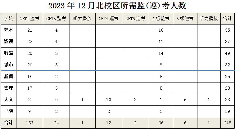 2、本次考试分为南北两个校区,请各学院在安排监考教师时,注意区分校区;