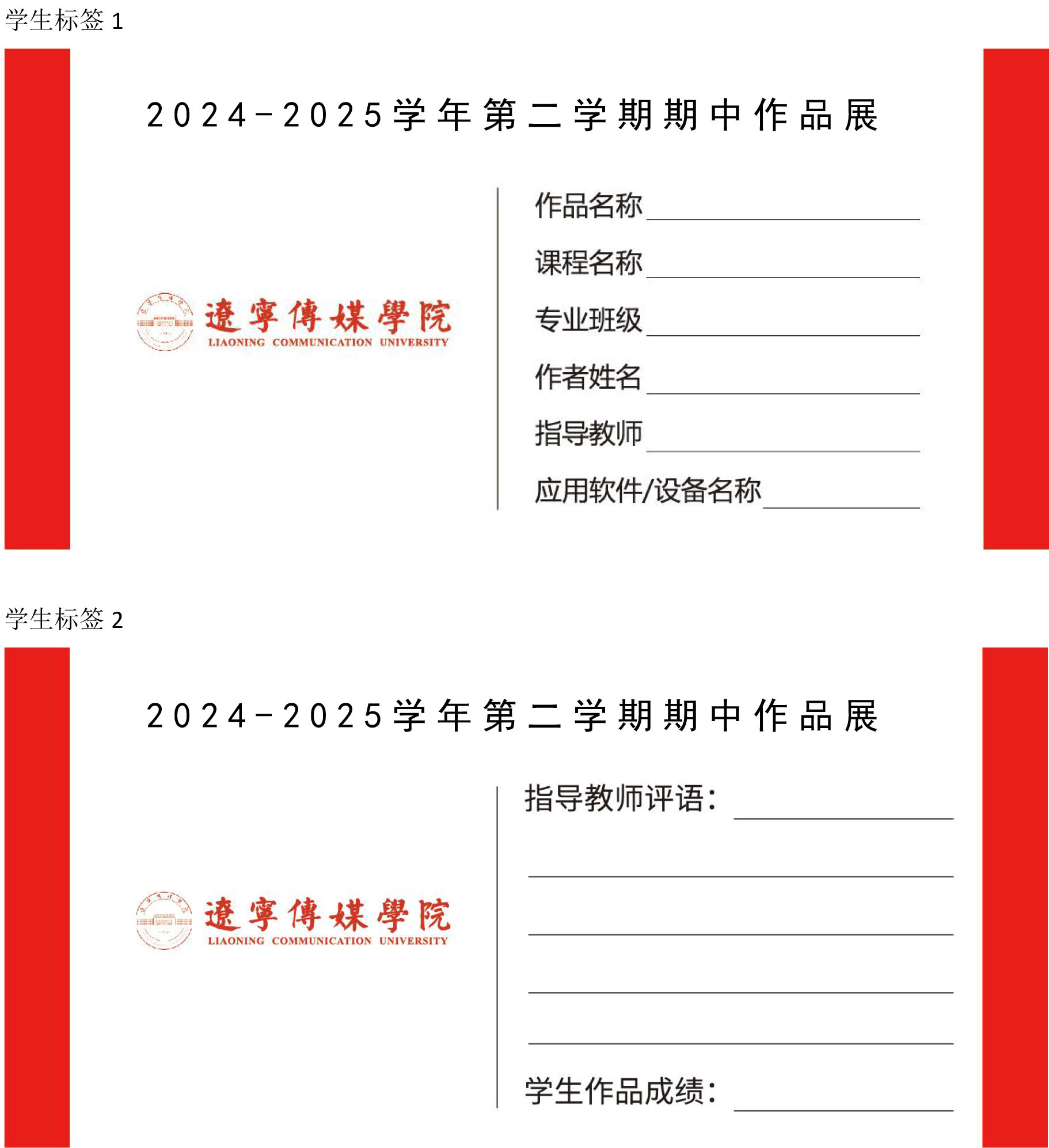 5. 参展作品要求必须有学生作品标签,内容为指导教师评语和学生作品成绩。