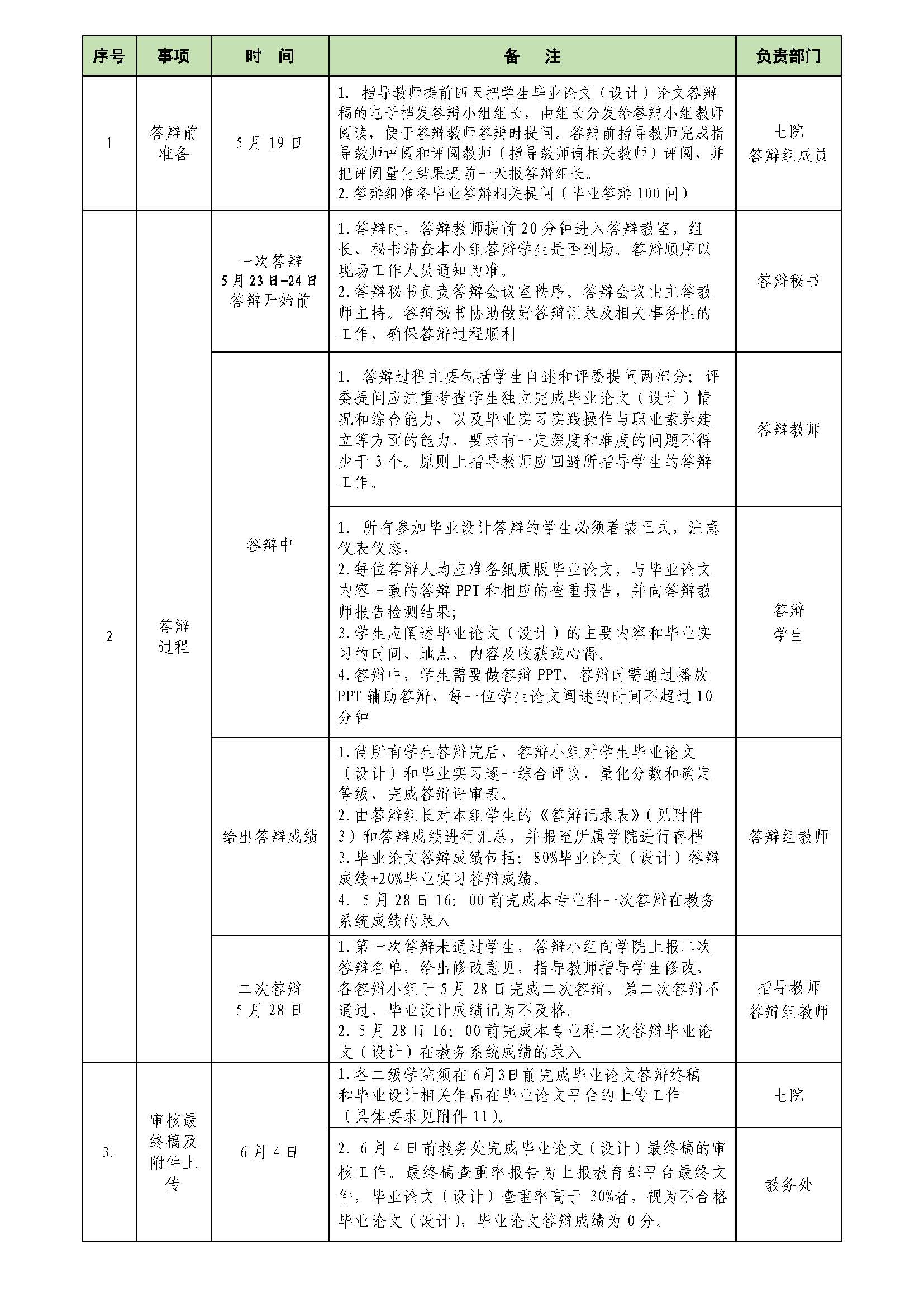 1.各二级学院于5月20日16:00前提交本学院毕业答辩工作总体方案,方案须包含毕业答辩现场组织安排等具体内容。