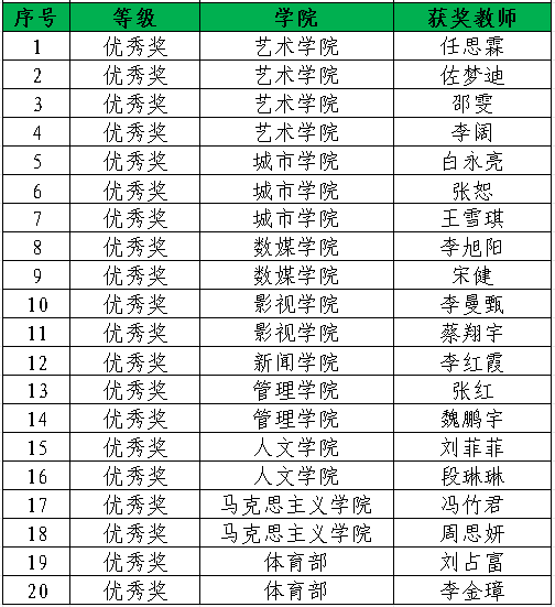 2024年beat365在线唯一官网教师教学创新大赛圆满落幕,经初赛、复赛、决赛,最终评选出获奖者38人。综合复赛(占比60%)、决赛(占比40%)成绩,最终评定一等奖3人,二等奖6人,三等奖9人,优秀奖20人,具体获奖名单公示如下: