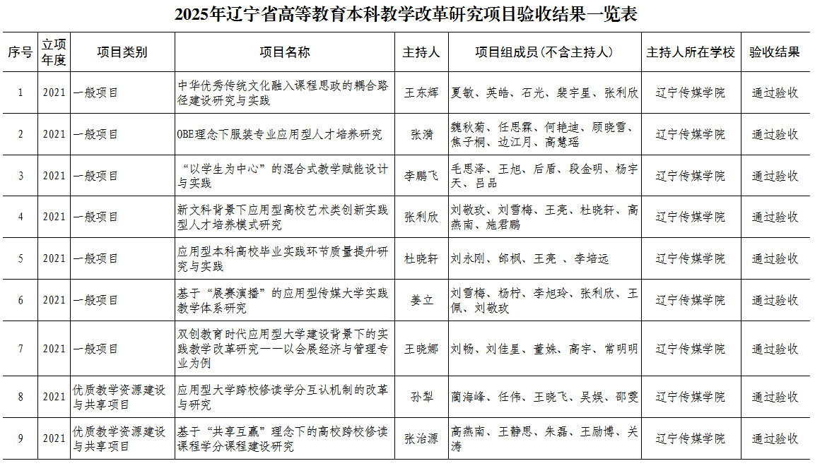 根据《关于做好辽宁省普通高等教育本科教学改革研究项目结题验收工作的通知》(辽教通〔2025〕15 号)文件精神,beat365组织开展了2021年、2022年辽宁省高等教育本科教学改革研究项目结题验收工作,现将结果公示如下(详见表格)。