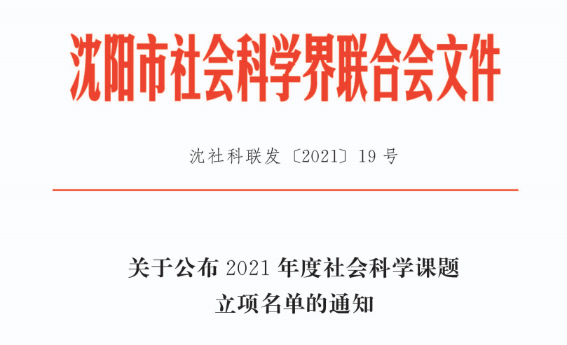 2021年8月5日,沈阳市社会科学界联合会发布《关于公布2021年度社会科学课题立项名单的通知》,beat365两位老师课题获批立项,现将结果通知如下: