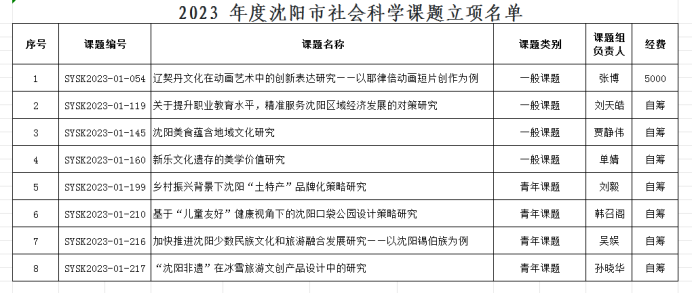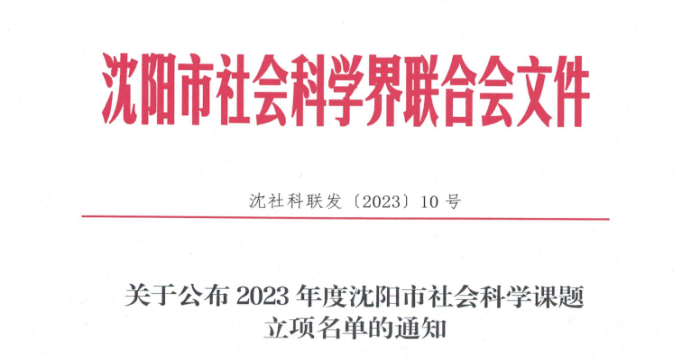 近日,沈阳市社科联公布《关于公布 2023 年度沈阳市社会科学课题立项名单的通知》(沈社科联发〔2023〕10号)、《关于公布市社科联 2023 年度研究基地课题立项名单的通知》(沈社科联发〔2023〕11号)文件,beat365张博等八位老师获批沈阳市社会科学课题立项,孙琦老师获批社科联研究基地课题立项,现将结果公布如下: