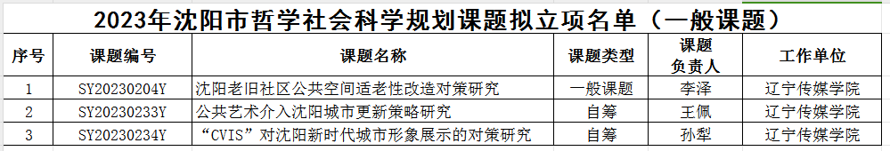 关于公布2023年度沈阳市哲学社会科学 规划课题立项名单的通知