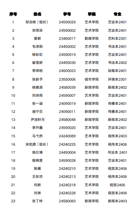 本次选拔过程秉持公平、公正、公开的原则,吸引了众多有志于参与美育工作的学生报名。经过层层筛选和严格考核,最终确定了以下23名学生担任美育中心学生助理: