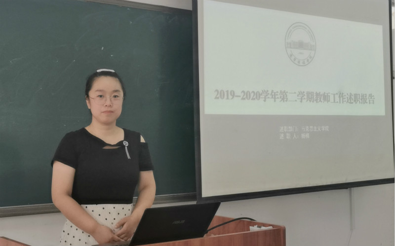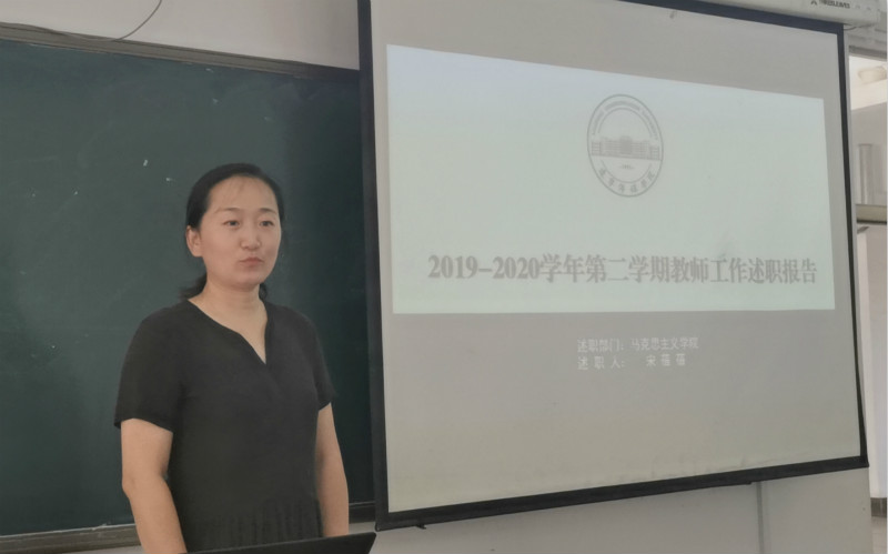 裴院长首先对马院2020年上半年的工作进行了回顾,并就本次述职的意义和要求向各位老师进行了说明。随后,各位教师就个人一学期来的工作,分别从教学工作、内涵建设、其他工作、存在问题、改进措施五个方面进行了回顾、梳理和总结,总结成绩、发现问题、查找不足、研究解决方法、规划下一步工作。通过述职,不仅起到了总结个人工作的作用,同时还让每位老师了解其他同事的工作,相互了解、互相促进、共同提高。