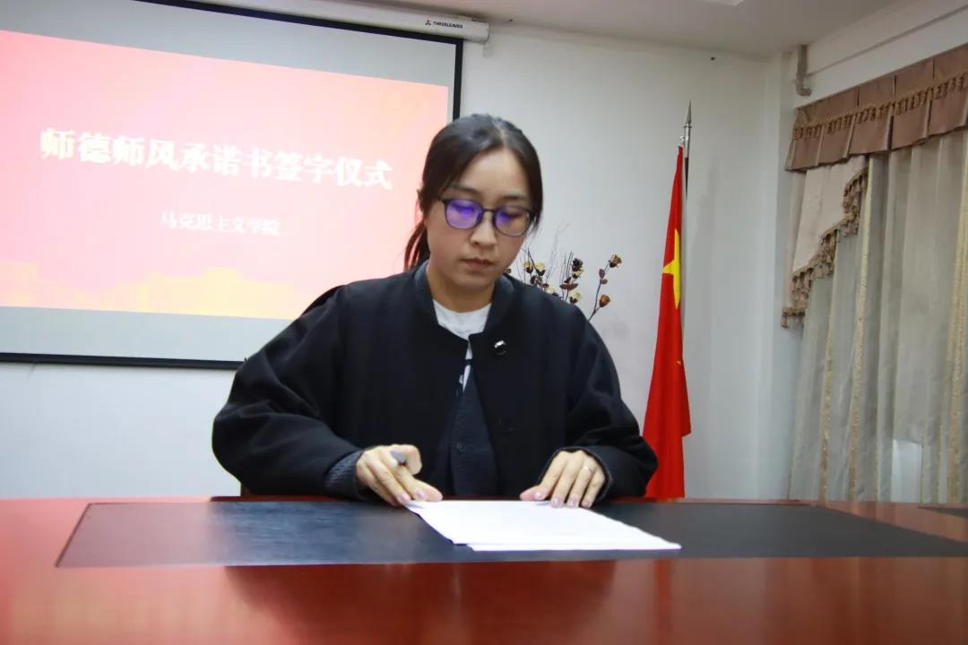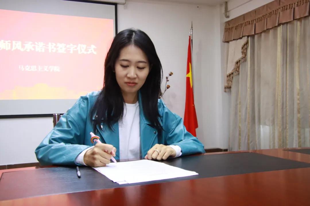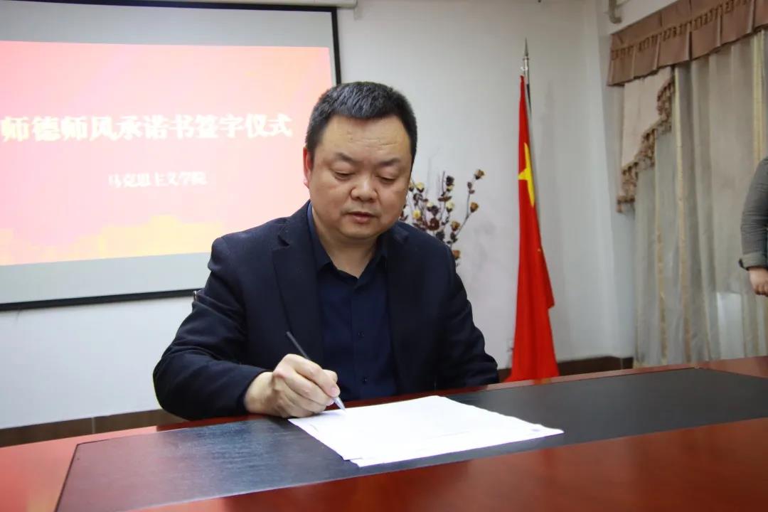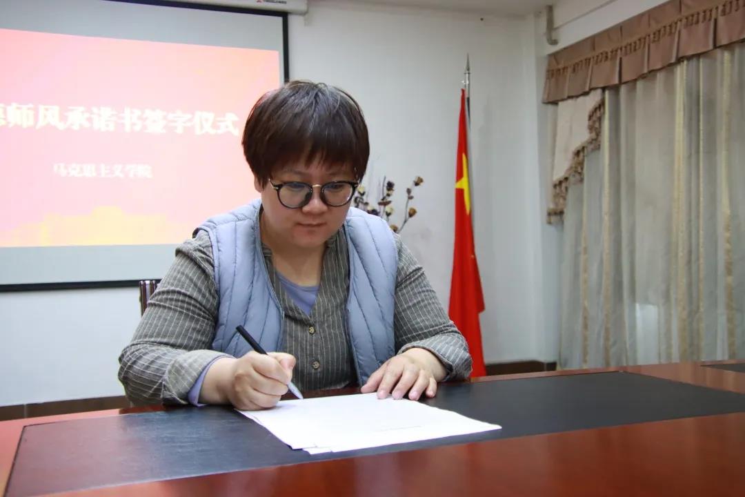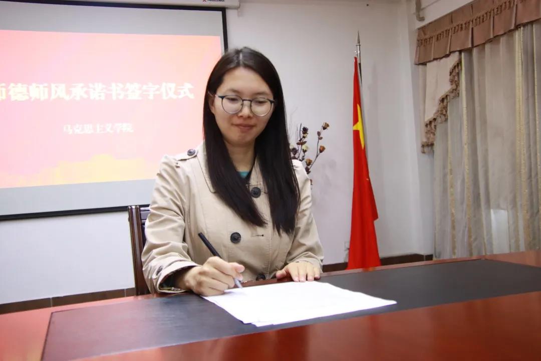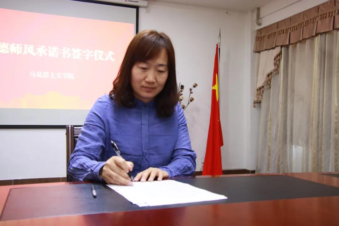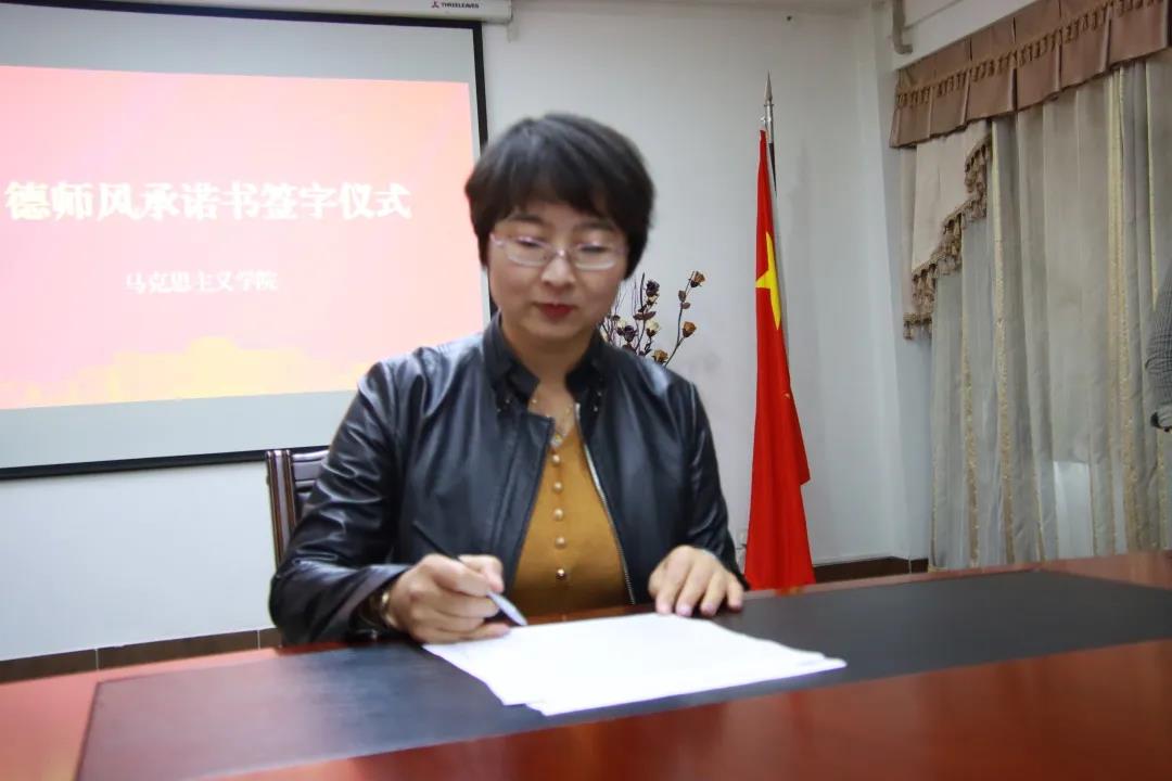 研讨会上,马克思主义学院还组织了签订《教师师德师风承诺书》仪式。每位教师在《教师师德师风承诺书》上庄严地签上自己的名字。表达了学为人师、行为世范的理想和做“四有”好老师的决心。